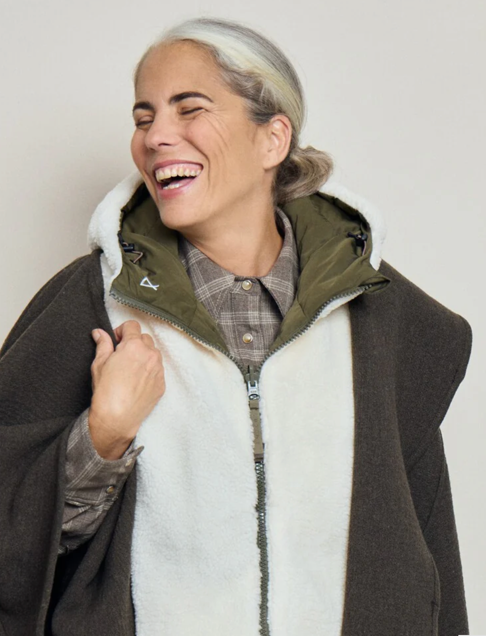 Capuche doudoune kaki et écru effet mouton