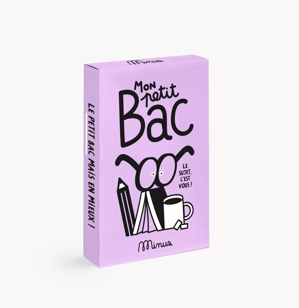 Quand Minus reprend les règles du célèbre Petit Bac, on enlève les pays, les villes et les animaux (un peu trop classique !) pour les remplacer par des sujets sur vous, vos goûts, vos choix, vos anecdotes... Il faut quand même que ce soit vrai et que vous puissiez expliquer votre choix pour remporter la carte !